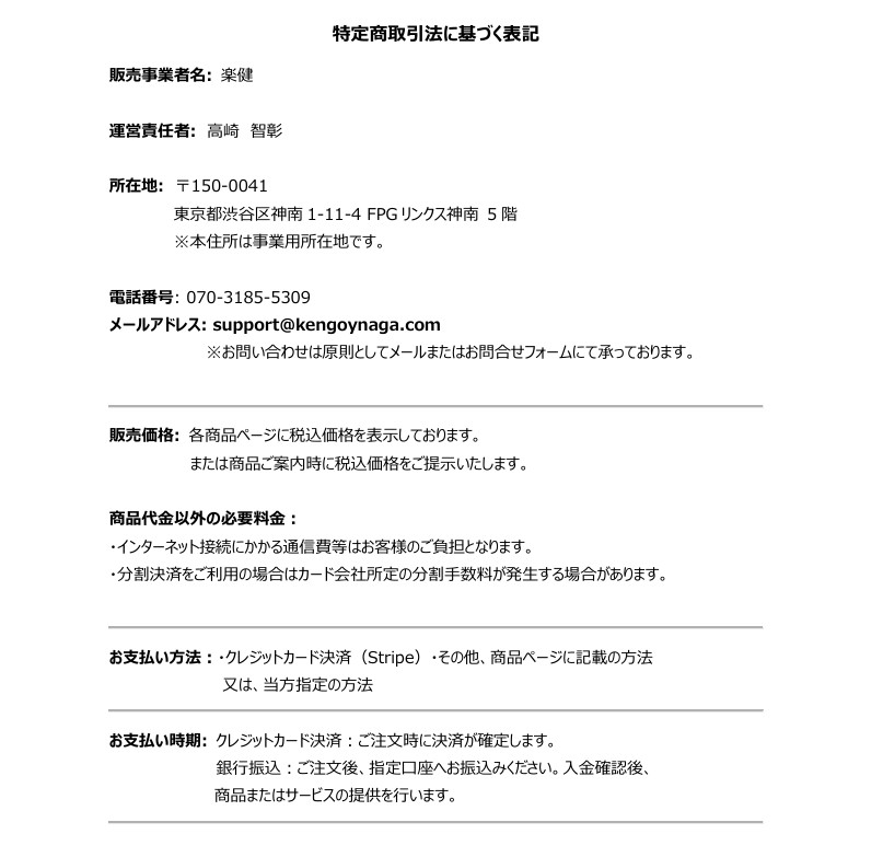 特定商取引法に基づく表記